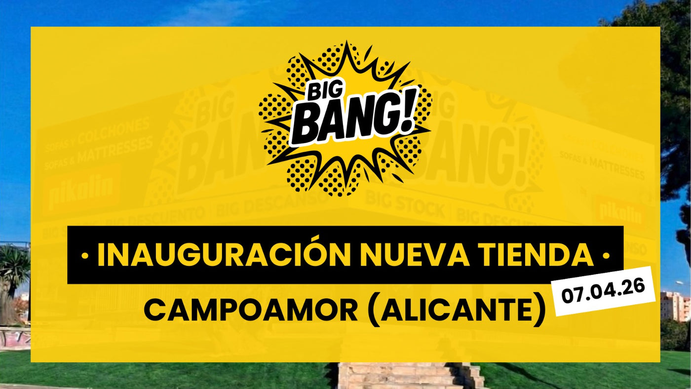 Big Bang abre tienda en Alicante (Campoamor) el 7 de abril. Sofás y colchones en Alicante con precios de outlet, entrega inmediata y financiación.
